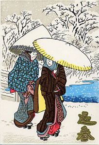 | ●題材が決まったら、年賀状サイズに縮小コピーをとります。 それを下敷きに、なるべく薄めの紙に輪郭を鉛筆でトレースします。トレーシングペーパーはくるくると 丸まってしまい不向き(版下も同様)。 ●トレースした下絵を元に版下を作成しますが、ここがいちばん大事な作業です。 ズレ補正用の機能付きの機種なら多分それほど気を使わなくてもいいのかもしれませんが、私の持って いるような多版刷り対応でないものは、ここの段階が最後の出来に影響してきますから慎重に。 ●載せる色ごとに黒ペンで塗りつぶし。 一色に一枚ではあまりに枚数が多くなってしまうので、接近さえしていなければ違う色の部分も塗って構 いませんが、注意する事があります。刷りの順序です。 いくら空間が開いて勿体ないような気がしても、上にいく色を下の版下に描くわけにはいきません。 ●そういうことを考えつつ、版下終了。はい、9枚になりました。 ●ぼかしもありますが下の版下でわかると思います。 |
