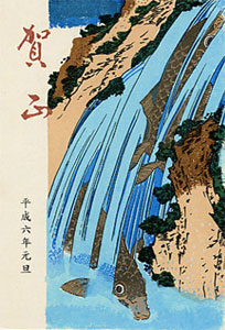 | ●題材が決まったら、年賀状サイズに縮小コピーをとります。 それを下敷きに、なるべく薄めの紙に輪郭を鉛筆でトレースします。トレーシングペーパーはくるくると 丸まってしまい不向き(版下も同様)。 ●トレースした下絵を元に版下を作成しますが、ここがいちばん大事な作業です。 ズレ補正用の機能付きの機種なら多分それほど気を使わなくてもいいのかもしれませんが、私の持って いるような多版刷り対応でないものは、ここの段階が最後の出来に影響してきますから慎重に。 ●載せる色ごとに黒ペンで塗りつぶし。 一色に一枚ではあまりに枚数が多くなってしまうので、接近さえしていなければ違う色の部分も塗って構 いませんが、注意する事があります。刷りの順序です。 いくら空間が開いて勿体ないような気がしても、上にいく色を下の版下に描くわけにはいきません。 ●そういうことを考えつつ、版下終了。はい、8枚になりました。 ●平成4年度のはありませんが、これは3作目です。それにしてはややこしいものを選んだものです。 よくやった!←自分(()\\(^.^ ) ドンドン 版下を減らすため、無理をしたところがいくつかありました。 |